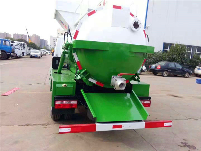 罐體容積4~5m3,罐體厚度4.5mm,配備120L/240L掛桶提升翻轉機構,液壓系統,后蓋液壓鎖緊開啟,罐體可以舉升自卸,尾部帶自流閥;用于運輸液態垃圾,其特點操作簡單,密封性好,無泄漏,無異味;可選裝固液分離功能,推板擠壓功能,常用于餐館的垃圾轉運處理 。