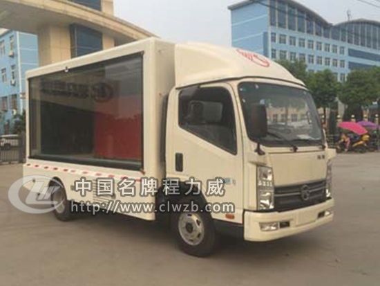 隨底盤選裝不帶導流罩的駕駛室,兩側均可選裝:LED升降或者不帶升降屏, 滾軸燈箱,條屏, 活動舞臺; 后部可選裝:通風口,后開門; 前部可選裝通風口或LED條屏.后,側防為裙板結構,故可豁免.ABS型號:CM4XL-4S/4K(4S/4M),ABS生產企業:廣州市科密汽車制動技術開發有限公司.
