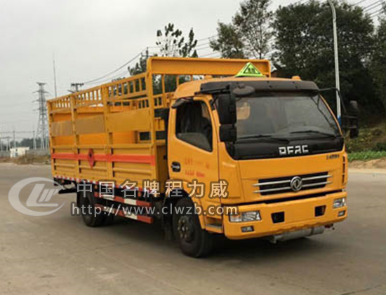 該車適用于運輸危險品。用于運輸具有獨立容器(瓶)包裝的易燃氣體(類項號:2.1):液化石油氣,壓縮甲烷或甲烷含量高的壓縮天然氣,乙炔,乙烷,丁烷,丙烯,丁烯,二甲醚,壓縮氧;用于運輸具有獨立容器(瓶)包裝的非易燃無毒氣體(類項號:2.2):二氧化碳,壓縮氧(氮,空氣,氦,氬,氖)。防護材料:Q235A碳鋼,連接方式:左右側面及后部防護均采用焊接連接,后部防護斷面尺(mm):100?0, 后部防護離地高度(mm):500。僅采用底盤子午線輪胎和帶ABS的底盤,該車前輪安裝盤式制動器,前置排氣管,裝配限速裝置,限速80km/h。安裝帶有衛星定位功能的行駛記錄儀。ABS系統生產廠家及型號:襄陽東風隆誠機械有限責任公司,ABS/ASR-24V-4S/4M。隨底盤選裝前面罩,前保險杠,前組合燈具。可選裝車后不帶液壓尾板時整備質量為3840kg。